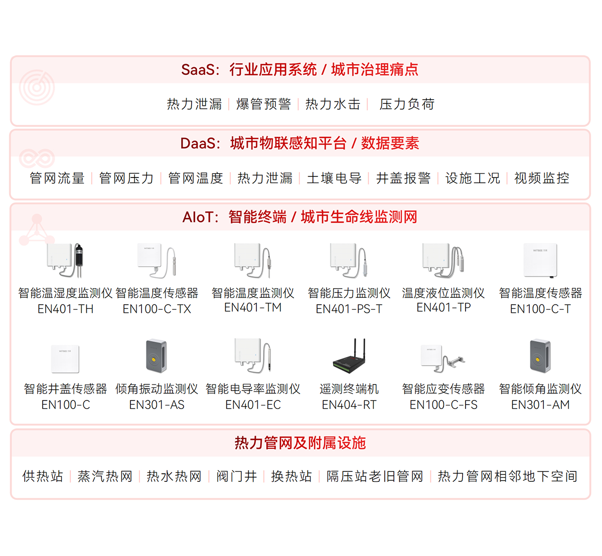 對供熱管網(wǎng)的蒸汽管道排潮孔溫度、疏水箱壓力,熱水管網(wǎng)土壤溫度,管網(wǎng)流量、壓力,井蓋異動等指標進行實時監(jiān)測,構(gòu)建供熱管網(wǎng)綜合管理的動態(tài)監(jiān)測網(wǎng)絡(luò),保證整個城市供熱穩(wěn)定安全運行。
