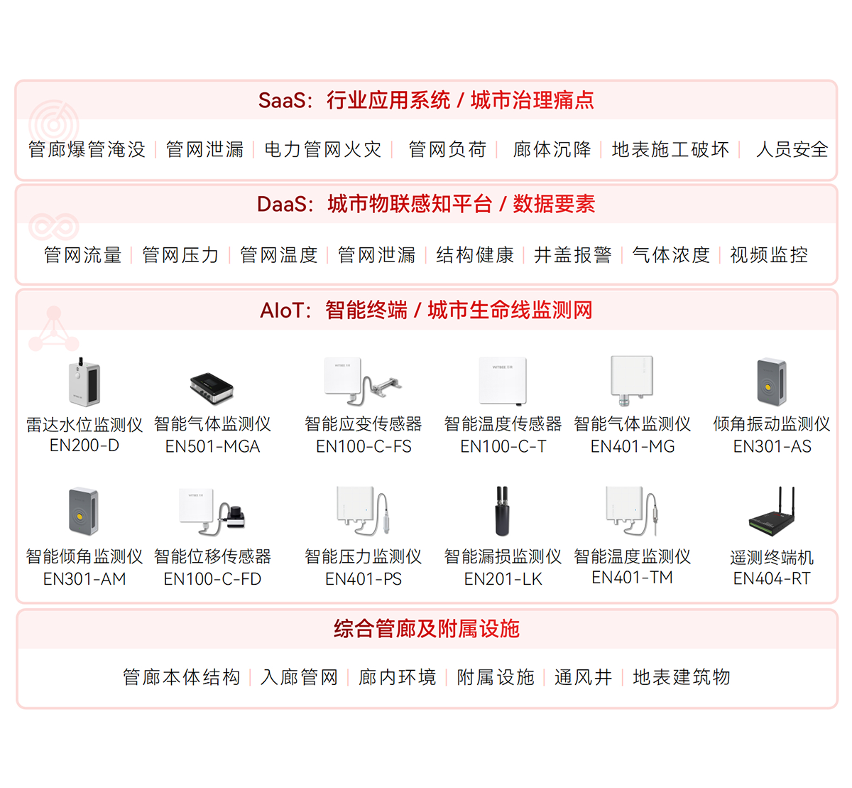 對管廊艙內(nèi)結(jié)構(gòu)的沉降、傾斜、震動和裂縫,管廊地表結(jié)構(gòu)沉降、位移和傾斜,管廊艙內(nèi)硫化氫氣體、甲烷氣體、溫濕度和氧氣,集水坑水位和孔口蓋板等數(shù)據(jù)實時監(jiān)測,同時接入視頻圖像,為管線風(fēng)險監(jiān)測預(yù)警分析、廊內(nèi)環(huán)境及附屬設(shè)施監(jiān)測預(yù)警分析和管廊綜合監(jiān)測預(yù)警分析提供數(shù)據(jù)支撐。